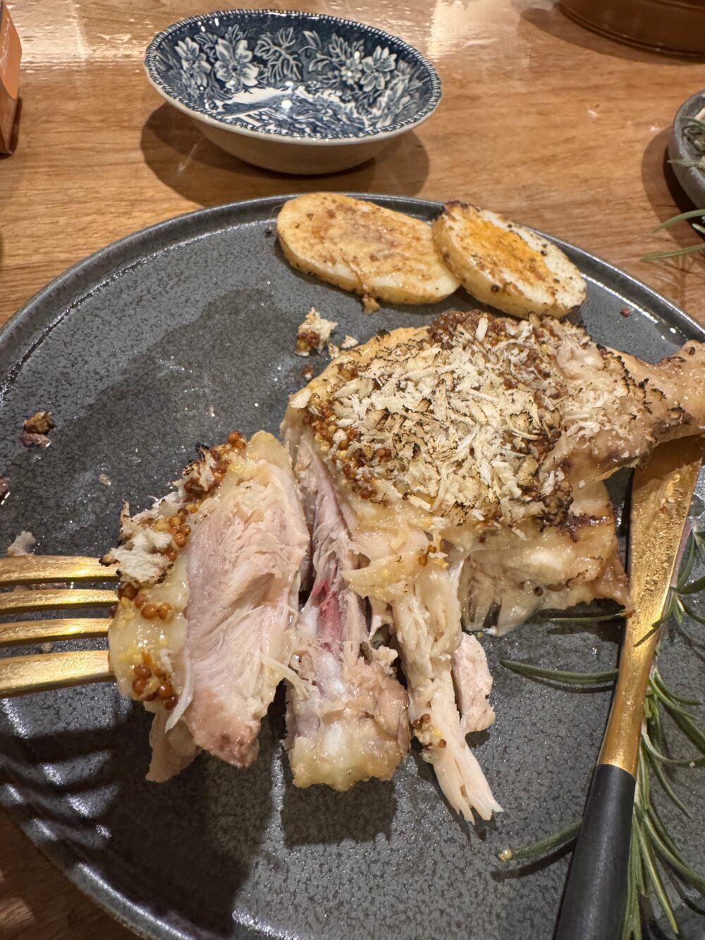 塩胡椒で焼いて最後にパルメジャーノをかけてカリッとさせました