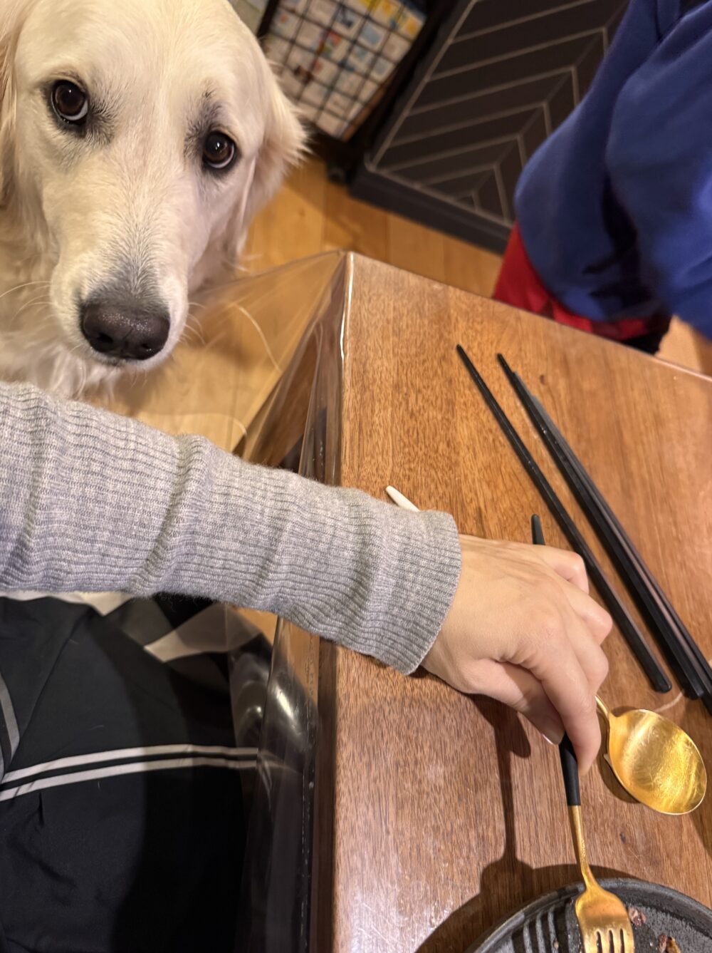 ご飯中、いつもこんな感じでずっと私の目を見てきます