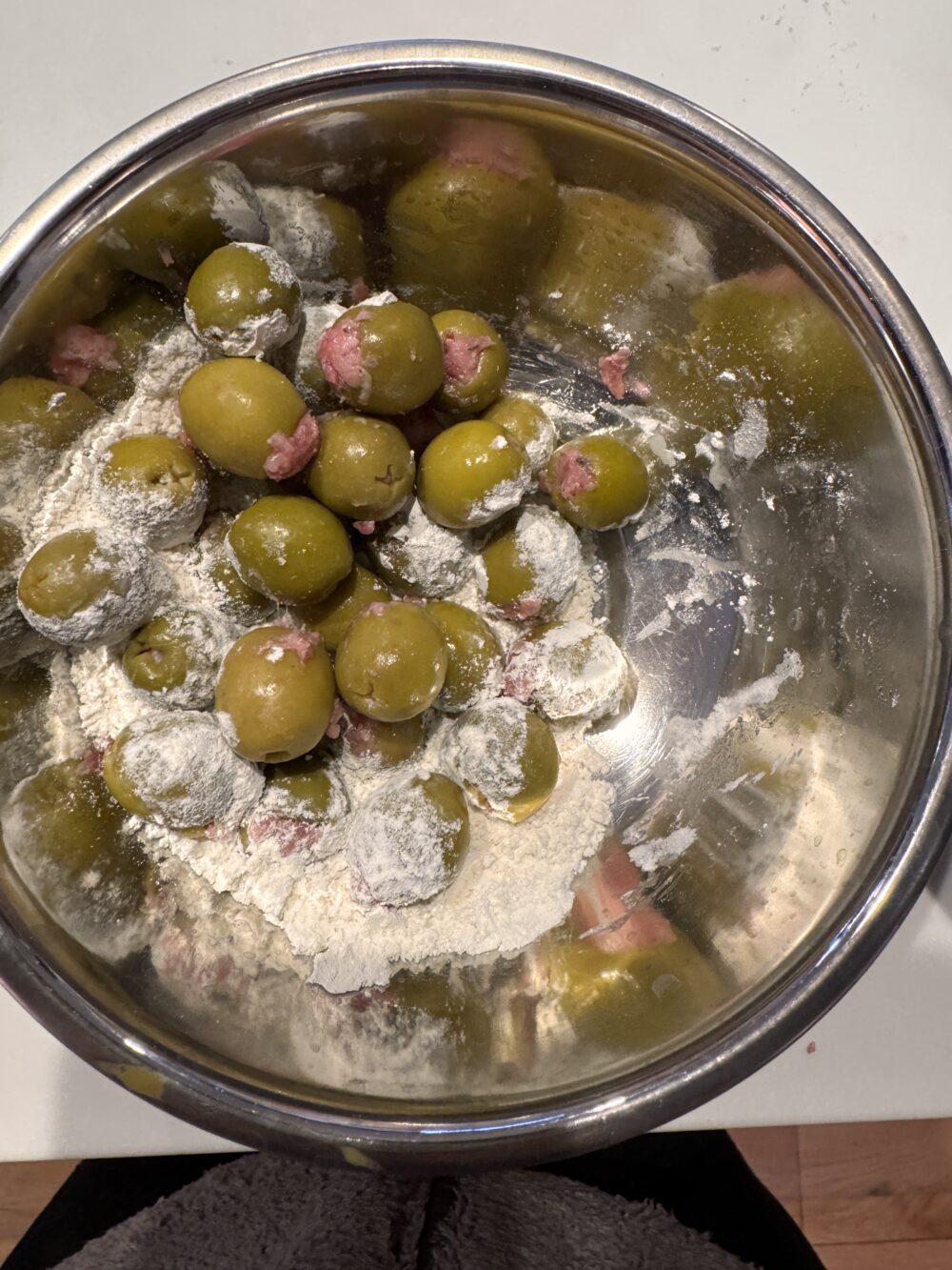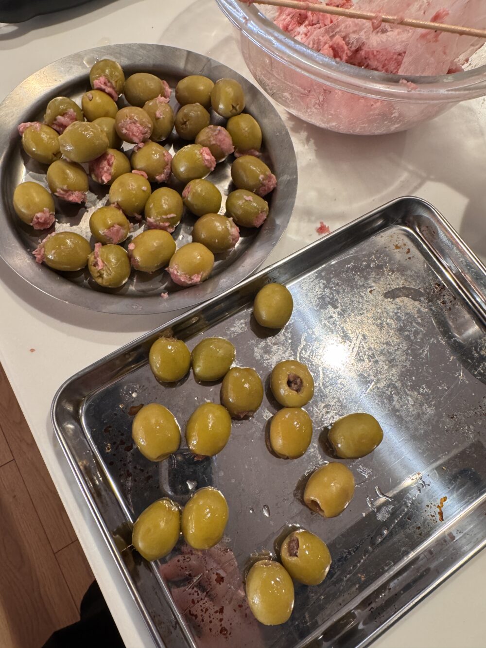 オリーブの穴にお肉を詰め詰めするアスコラーナ