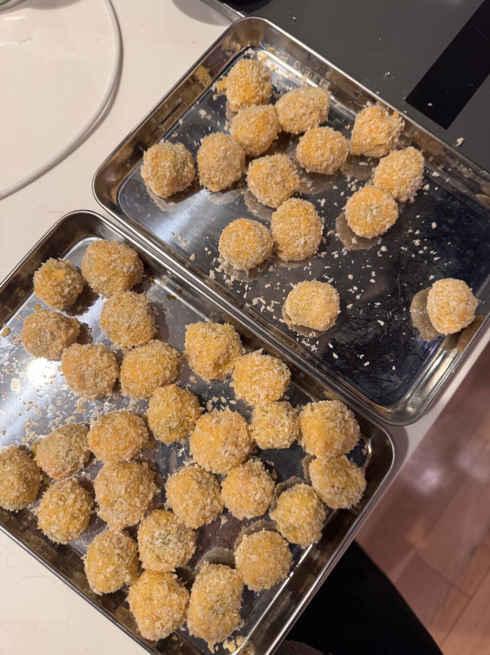 パン粉をつけた後また卵液へ入れて、衣を二度付するのがポイント