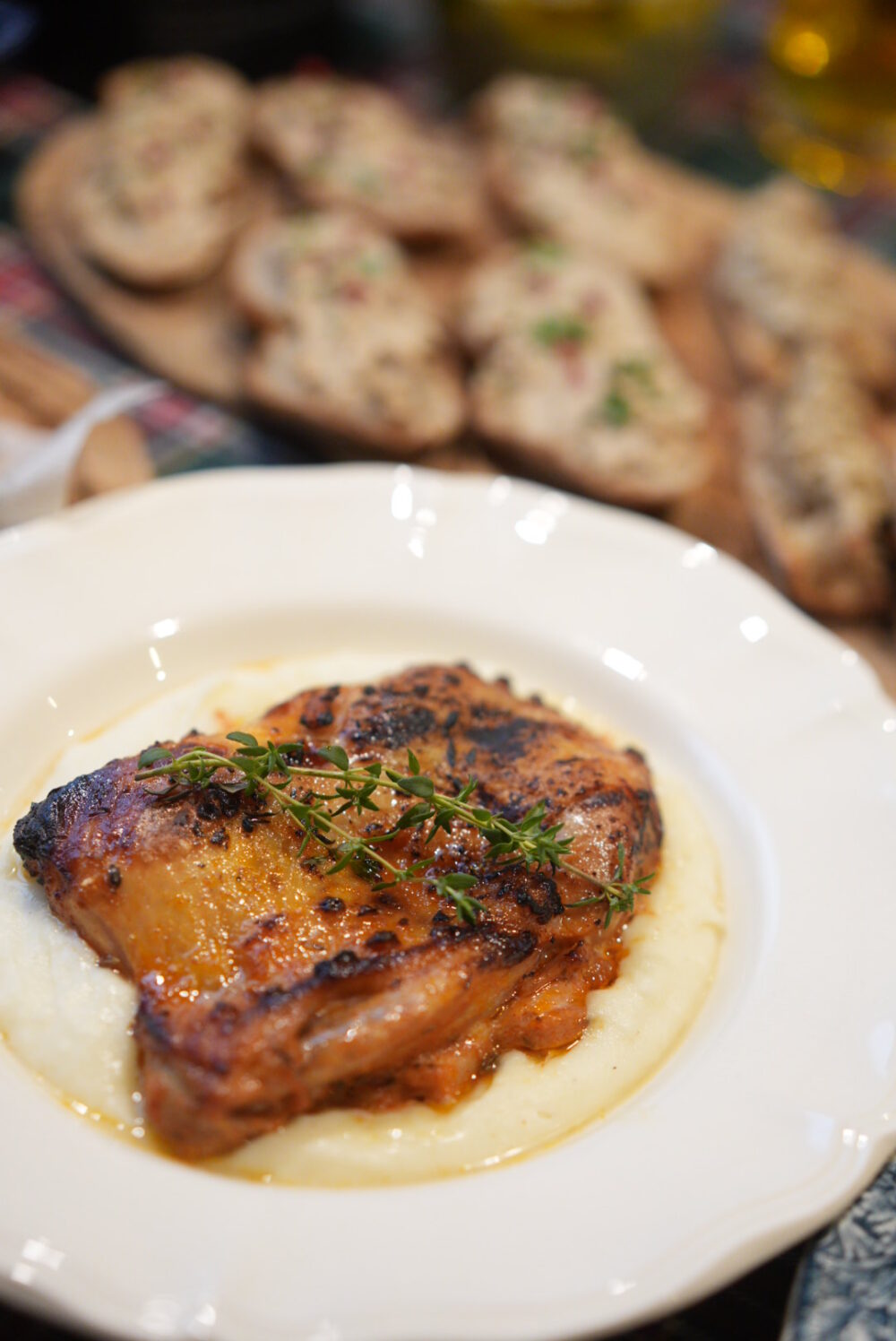 ゴルゴンゾーラのバルサミコバターとチキンとポルチーニのブルスケッタ